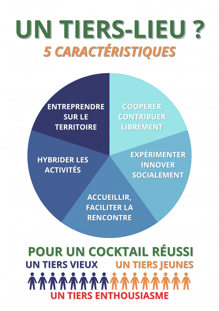 Espace créateur de lien social, pour vivre mieux, et réaliser les trois priorités de notre association, un Tiers-lieu est un espace de sociabilité du quotidien, animé par ses contributrices et contributeurs. Ce sont les gens qui y viennent qui font « Tiers-lieu », pas des animateurs ou animatrices qui décideraient souverainement.