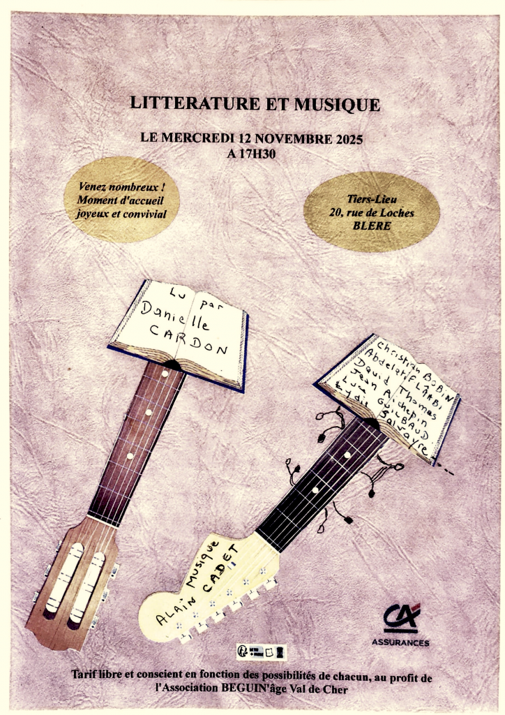 Notre adhérente Danielle Cardon, accompagnée du musicien Alain Cadet, nous propose un moment de lecture et de musique autour de textes de poètes, connus et à découvrir.